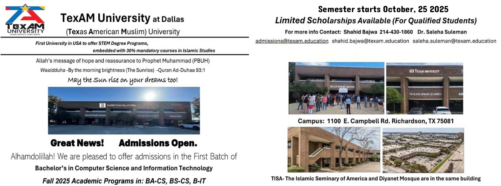 First University in USA to offer STEM degree programs embedded with mandatory Courses in Islamic Studies.